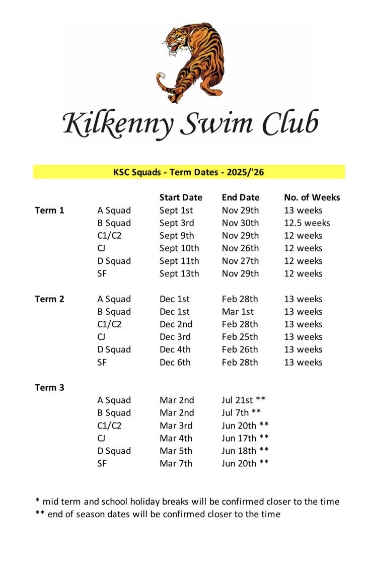 The Calendar below depicts all the training times for the Kilkenny Swimming Club for all Squads (A,B,C and D) If unsure on the time for the training please click on the event and/or contact us.